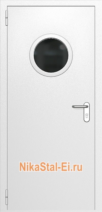 Однопольная металлическая дверь с круглым стеклопакетом для чистых помещений Арт411
